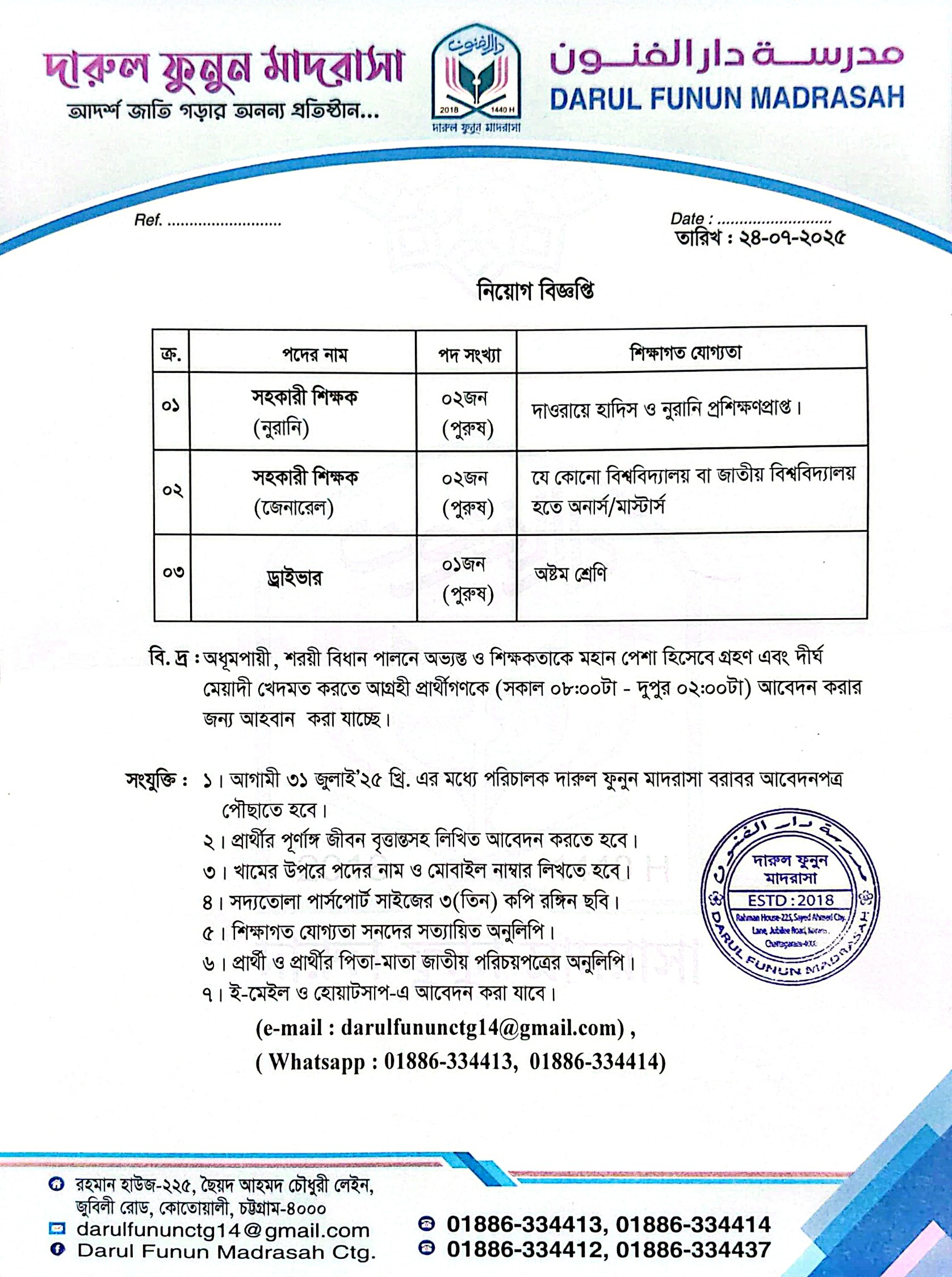 নিয়োগ বিজ্ঞপ্তি শিক্ষক/ড্রাইভার