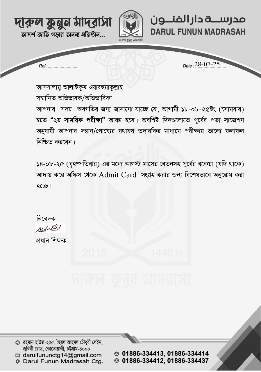 নোটিশ ২য় সাময়িক পরীক্ষা -২৫