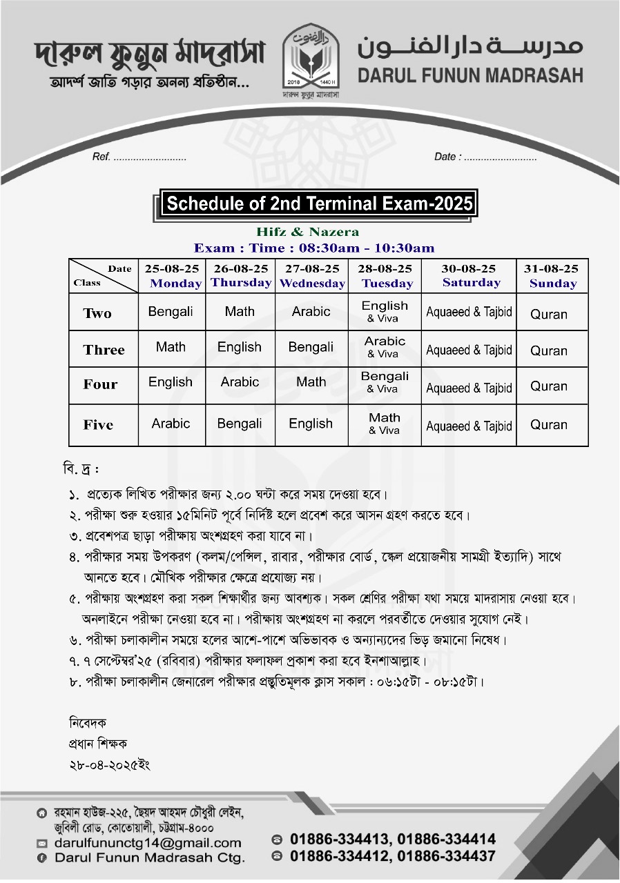 2nd Term Exam Hifz Bivhag Rutine-25
