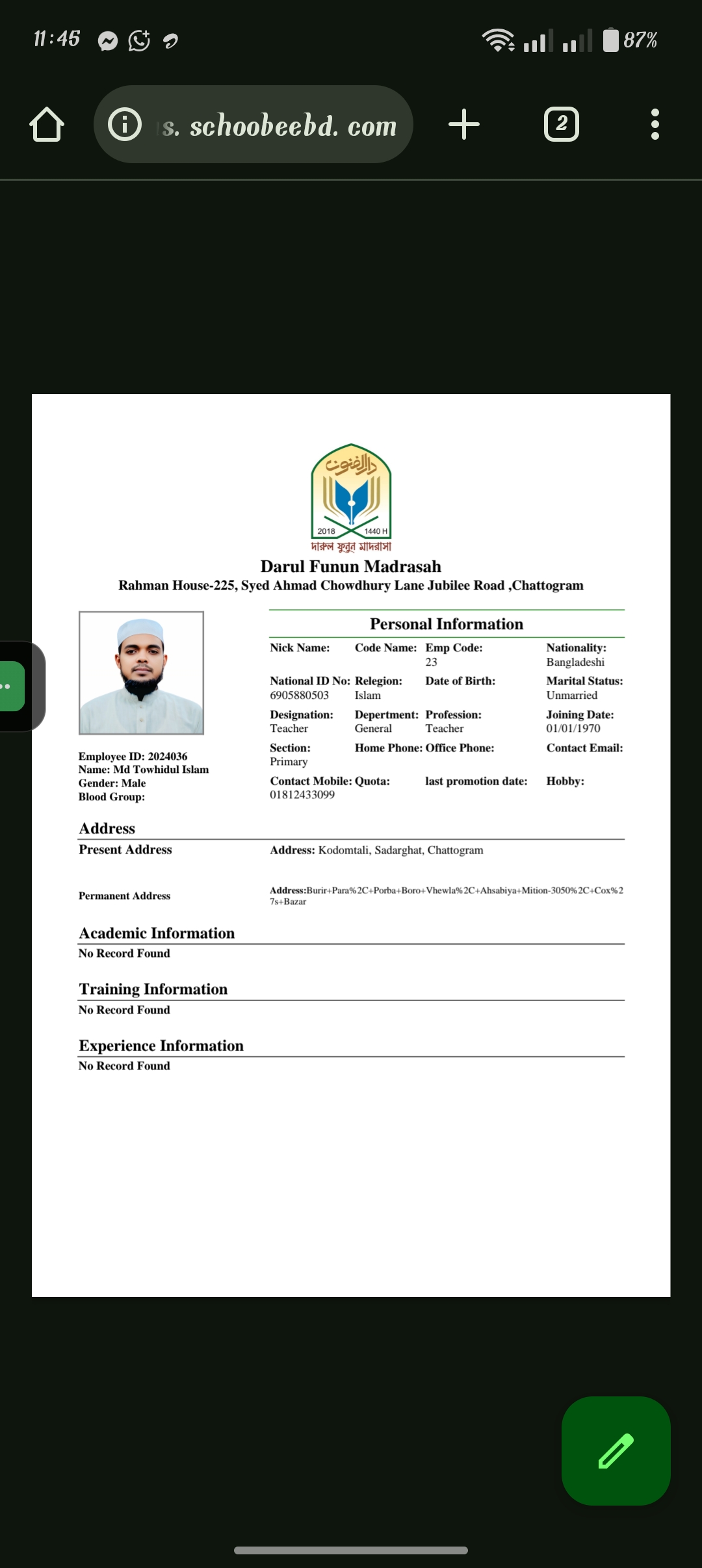 প্রতিষ্ঠানের তথ্য